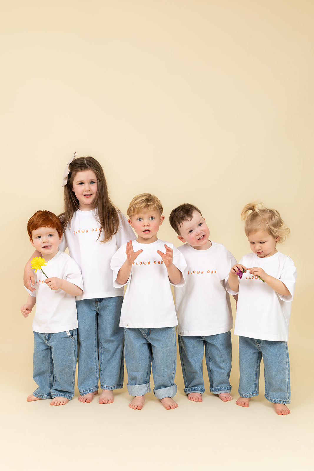 The Flown Oak Logo Tee is your go-to staple. Clean, classic, and made for everything from daycare drop-offs to babyccino dates and sandy park adventures.